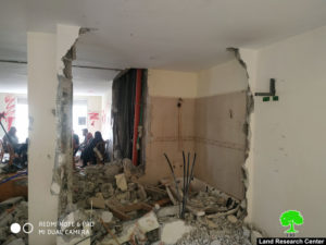 - هدم مسكن الأسير وليد حناتشة: في نفس التوقيت تم اقتحام حي الطيرة في مدينة رام الله، تحديداً عمارة ” توليب” القريبة من دوار الشهيد جورج حبش، حيث اقتحم جيش الاحتلال العمارة السكنية المكونة من سبعة طوابق والتي يقطنها 13 عائلة، حيث تم استهداف شقة الأسير الواقعة في الطابق الثالث، ومن خلال أدوات حفر يدوية تم تدمير جدران الشقة الداخلية والخارجية وتحطيم البلاط ومرافق الشقة السكنية بالكامل، علماً بأن الشقة تبلغ مساحتها 167م2 وكان يقطنها الأسير المعتقل وليد محمد حمدان حناتشة وزوجته وطفلتين هم بنات الأسير، علماً بأن الشقة هي ملك لزوجة الأسير بيان محمود محمد حناتشة وتعمل معلمة في مدارس القدس.