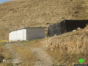 On Sunday morning, the tenth of May, 2020, the Israeli occupation army stormed the village of Atouf in the plain of Al-Baqi’a, east of Tubas Governorate, where the so-called Planning and Building Officer of the Israeli “Civil” Administration handed over a stop work notice in a tin roofed residential barrack under the pretext of un-licensing.