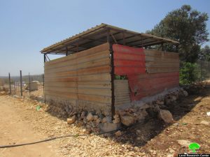 غرفة معدنية متنقلة مساحتها 16م2 في قطعة ارض مساحتها 2 دونم محاطة بسياج معدني. |