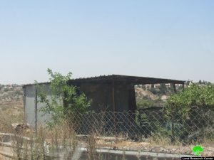 غرفة معدنية متنقلة مساحتها 16م2 في قطعة ارض مساحتها 2 دونم محاطة بسياج معدني. |