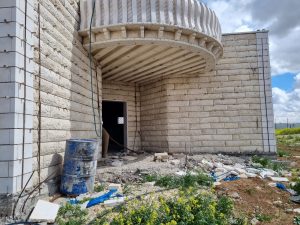 Ad-Daghameen started building her house in year 2020 , and was at the final construction phases when the notice came , the house has a total area of (170 m2) , and composes of one floor built of stones and cement , and supposed to be a home for a family of (12 people , among them 8 children , and 7 females).
