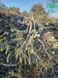- الانتهاك: قطع أشجار زيتون بشكل جزئي.