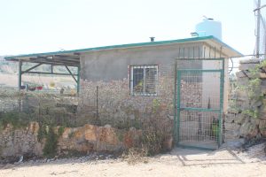 ” تبلغ مساحة أرضي نصف دونم، وبسبب إخطار الإسرائيليين أي بناء بحجج غير منطقية قمت بوضع حافلة (غير صالحة) في الأرض وهيأتها من الداخل ليتم استخدامها للمعدات الزراعية أو الاستراحة بعد العمل بالأرض وفي بعض الأحيان نبقى فيه ليلاً”.