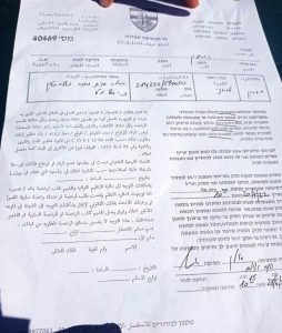 وطالبت سلطات الاحتلال في إخطاراتها بالتوقف فوراً عن أعمال البناء بحجة المباشرة فيها دون ترخيص (تصريح بناء)، وحددت تاريخ (20/7/2022) موعدًا لعقد جلسة لما يسمى باللجنة الفرعية للتفتيش (الجهة التي أصدرت الإخطار) حيث ستعقد جلستها بمقرها في مستعمرة ” بيت ايل” وستبحث فيها ما أسمته ” هدم البناء أو إرجاع المكان إلى حالته السابقة”.