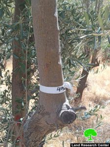 وأفاد مراد الشلالدة- احد مالكي الأراضي- بأن جنود الاحتلال قد استقدموا- في ساعات الصباح- حفارا ، وقاموا بوضع ملصقات على أشجار الزيتون المنوي اقتلاعها، تحمل أرقاما وكلمات كدلالات وإشارات للحفار الذي سيقتلعها.