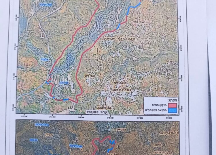 في الثاني من شهر تشرين أول من العام 2025، أصدرت سلطات الاحتلال الإسرائيلي أمرًا عسكريًا جديدًا يحمل الرقم (ت/3/25) تحت عنوان “تعديل حدود – يهودا والسامرة، 5785-2025“. ويأتي هذا الأمر ضمن سلسلة الأوامر العسكرية التي تهدف إلى إعادة رسم الحدود وتغيير المعالم على الأرض بما يخدم مستوطنة افراتا غرب مدينة بيت لحم.
