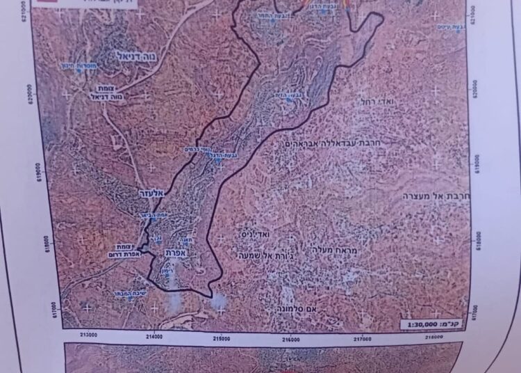وجاء الامر العسكري تحت ذريعة “الأغراض العسكرية”، لذات الهدف, وهو إقامة سياج أمني حول مستوطنة “إفراتا”. وبحسب التفاصيل الواردة في الأمر العسكري والخرائط المرفقة، فقد تم تخصيص نحو 57.8 دونمًا من الأراضي الفلسطينية لهذا الغرض. ويُعد هذا القرار العسكري خطوة تمهيدية ضمن مخطط توسّعي ممنهج يهدف إلى توسيع نفوذ مستوطنة افراتا الجغرافي على حساب القرى الفلسطينية المحيطة. كما يمثّل هذا الإجراء جزءًا من سياسة أوسع تتّبعها سلطات الاحتلال تقوم على فرض وقائع جديدة على الأرض الفلسطينية والتي من شأنها أن تقوض اية تنمية فلسطينية في المنطقة. .