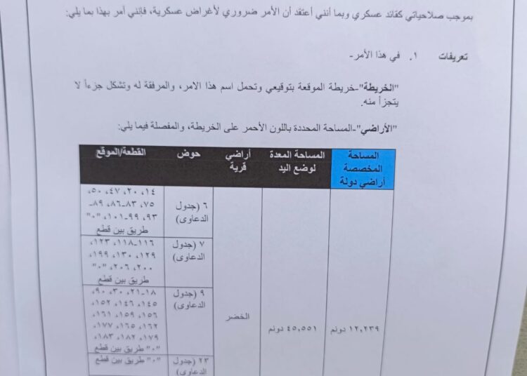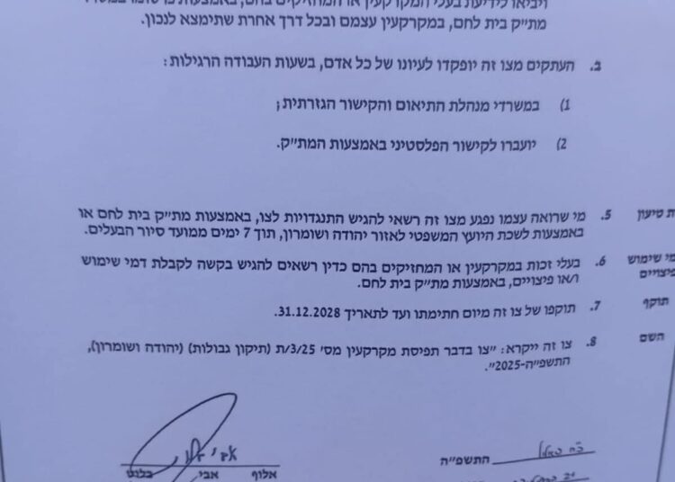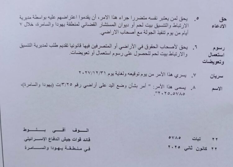 الصور 5-8: الامر العسكري الإسرائيلي رقم “(ت/3/25) الصادر في شهر نيسان 2025