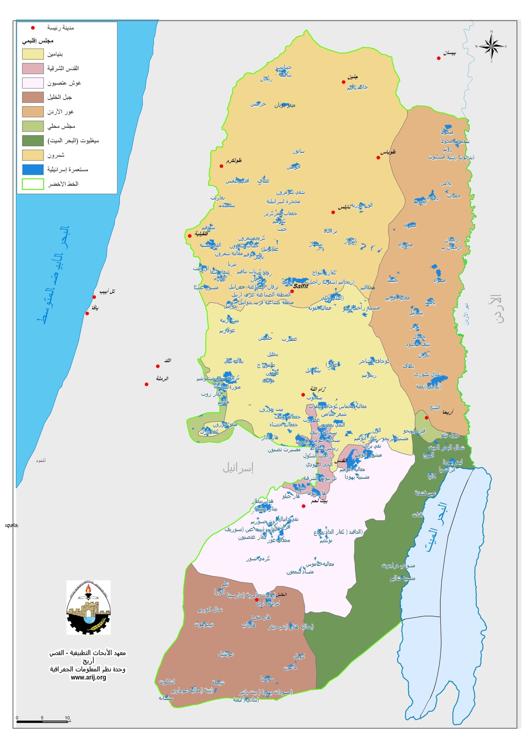 2. ألموج 3. بيت هعرافا 4. كيديم عرفاه 5. كاليا 6. افينات 7. متسبيه شاليم 8. بيت هوجلاه – روءا نيفو (المصدر: مجلس إقليمي البحر الميت) |