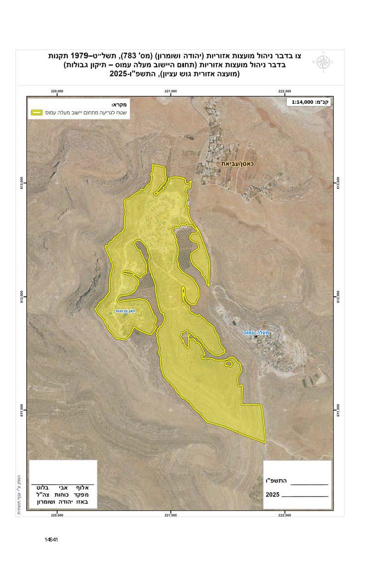 | المساحة المقتطعة من المستوطنة | 24 تشرين الثاني 2025 | 1313.2 | معاليه عاموس | 16 |