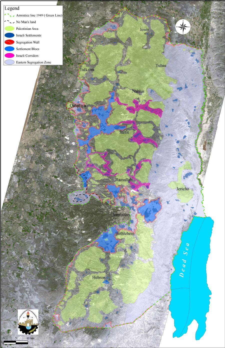 Map 1: The distribution of areas controlled by Israelis and partially controlled