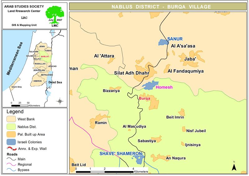 في الساعة السادسة صباح 22 تموز 2007 هاجم نحو 300 مستعمر من الذين ينوون إعادة بناء مستعمرة ‘ حومش’ مساكن المواطنين في قرية برقة بنابلس، وارتكبوا الاعتداءات التالية: