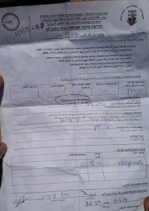 وبعد أن دمرت سلطات الاحتلال هذا المشروع سلمت مالكه كتاباً خطياً بعنوان ” اشعار وضع يد” مفاده بأن سلطات الاحتلال قامت بوضع اليد على المواد المكونة لهذا المشروع، وسيتم تخزينها في مستعمرة ” كفار عتصيون” .