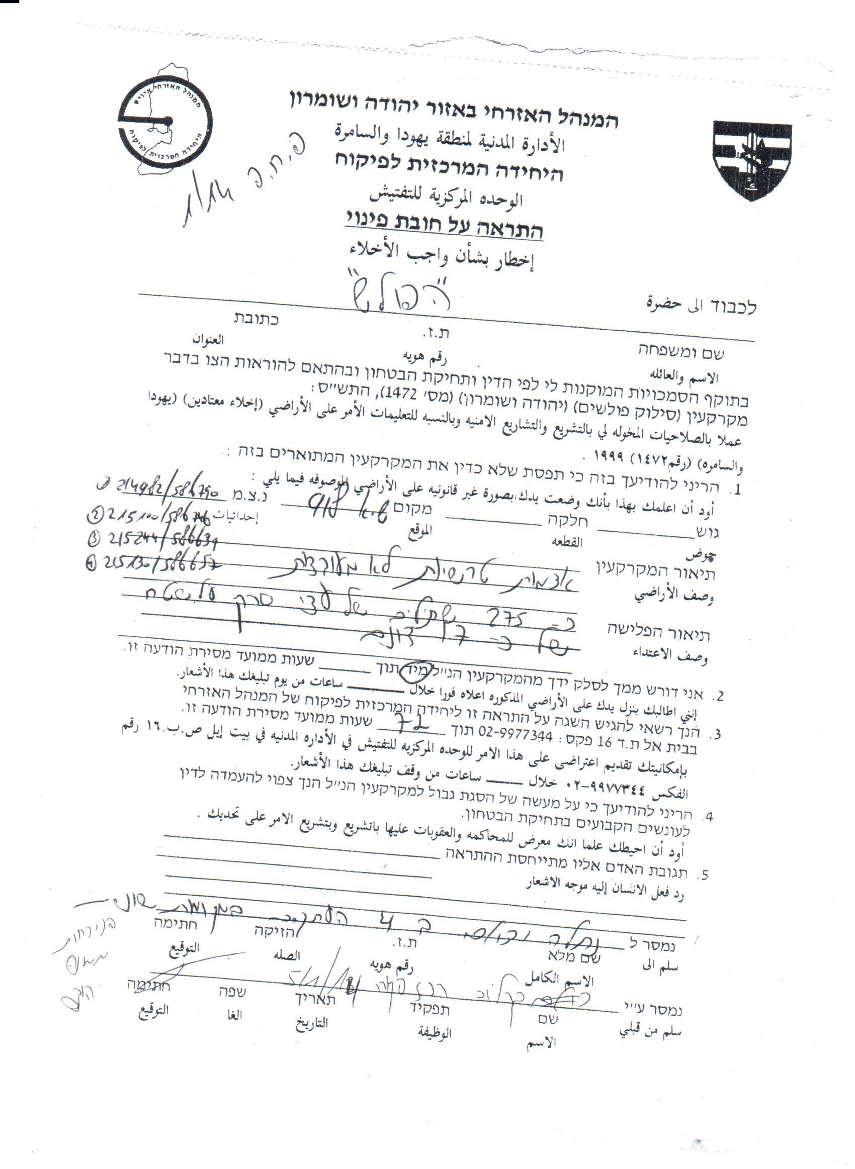 الجهة المعتدية : الإدارة المدنية التابعة للاحتلال.
